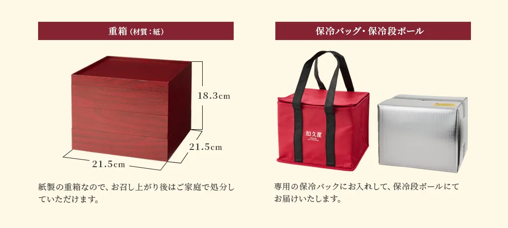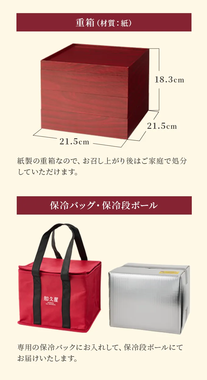 ※おせちは保冷バックでのお届けの為、ギフト包装(のし・メッセージカード)不可です。