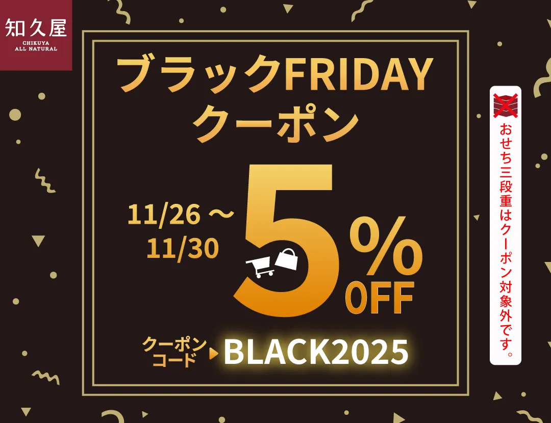 知久屋オンラインストアでは、”ブラックFRIDAYクーポン”をプレゼントいたします。